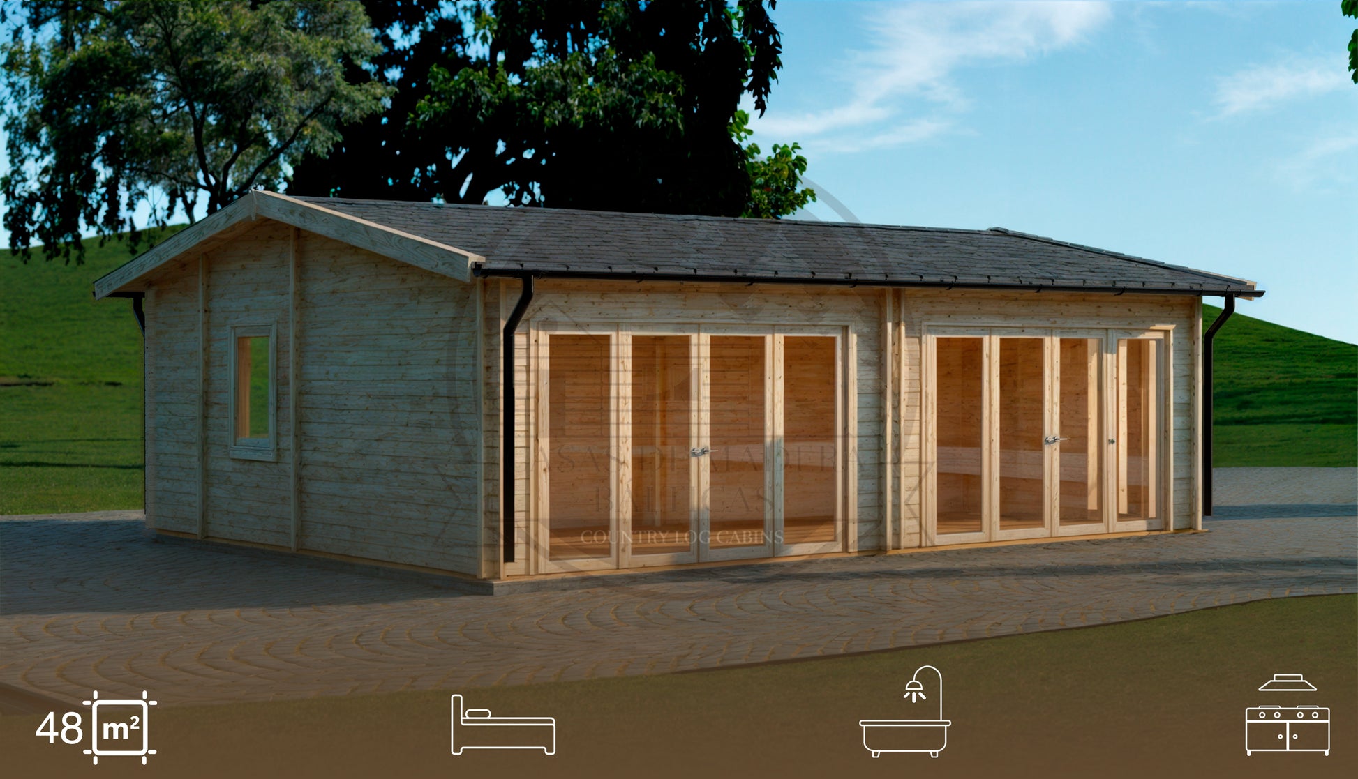Extras opcionales: tratamiento interior, contraventanas, contrapuertas, puertas y ventanas de PVC, persianas para puertas y ventanas de PVC, tejado de panel de sándwich, cámara de aire en cubierta (doble techo), aislamiento en suelo, extra de altura.