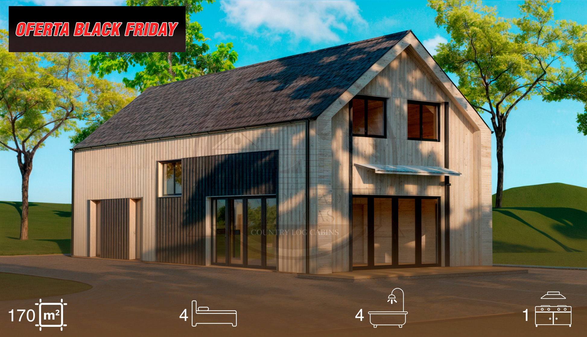 El precio incluye: suelo, paredes, puertas, ventanas, techo, tégola para la cubierta del tejado, material necesario para dar una mano de protección exterior, herrajes, transporte (solo en península) e IVA.